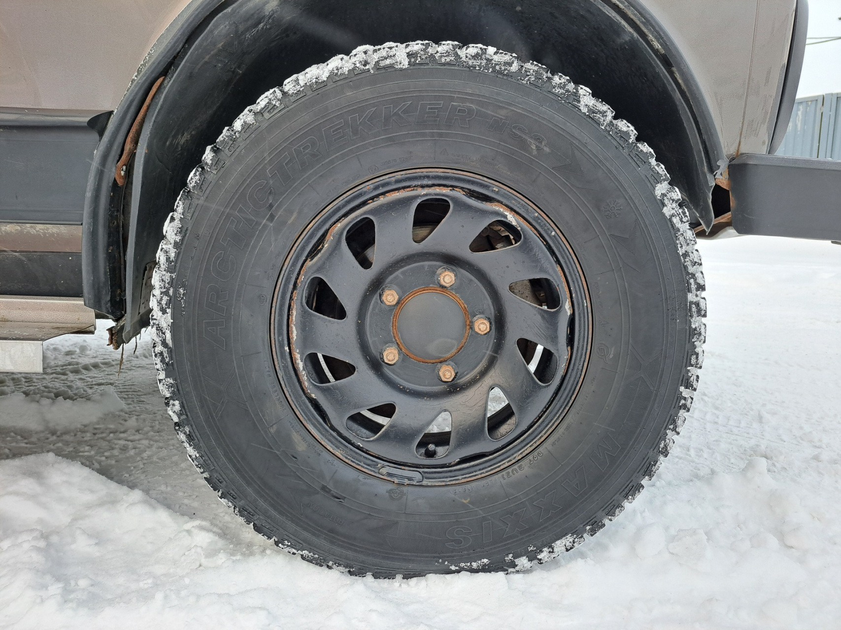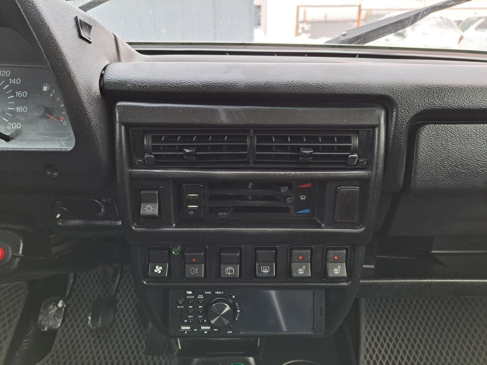 Хорошая комплектация с кондиционером обеспечит комфорт в дороге. Литые диски на зимней резине. Самодельные расширители арок и пороги придают автомобилю индивидуальность.